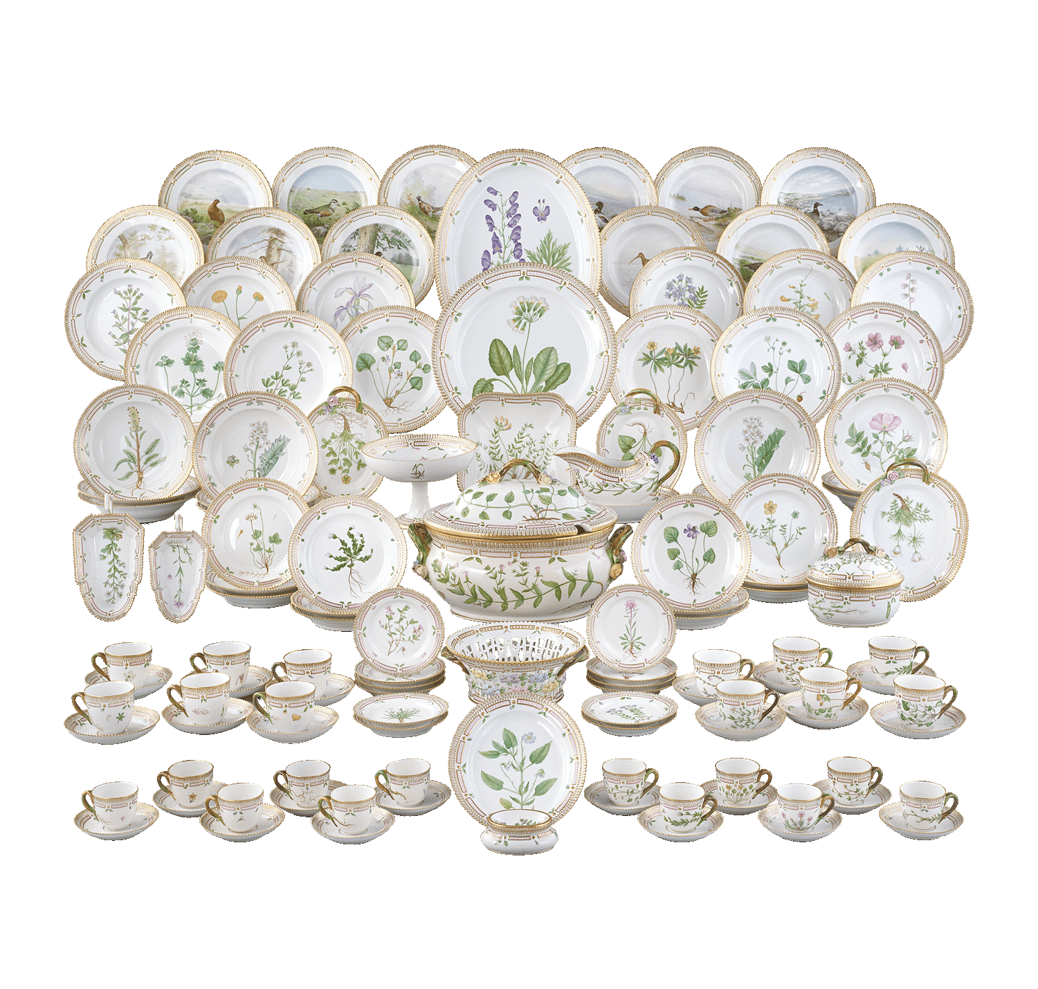 Najekstremniji primjer spajanja znanosti i porculana jest i danas najprestižniji danski servis manufakture Royal Copenhagen, Flora Danica. Svaki je komad ukrašen rukom oslikanom biljkom preuzetom iz istoimenog atlasa (1761.-1883.) koji je sustavno prikazivao biljni svijet danske monarhije. Za razliku od Meissena ili Sèvresa, ovdje nema buketa ni stilizacije, prikazana je cijela biljka s korijenom, plodom i sjemenom, često uz latinski naziv. Nastao je u Kopenhagenu u kontekstu prosvjetiteljskog interesa za prirodu i nacionalne flore. Projekt je pokrenut 1790. na inicijativu prijestolonasljednika, budućeg kralja Friedricha VI., a oslikavanje je trajalo godinama. Radilo se zapravo o poklonu ruskoj carici Katarini Velikoj, no zbog njene smrti 1796. servis nikada nije poslan u Petrograd. Umjesto toga ostao je u Danskoj i s vremenom postao nacionalna kulturna ikona koju manufaktura Royal Copenhagen i danas proizvodi u vrlo malom broju komada. To ne iznenađuje jer je vrijednost prvotnog servisa procijenjena na današnjih 1.7 milijuna dolara.