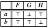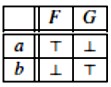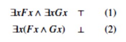 Prvi zahtjev ostvaruje se tako da ∃xFx i ∃xGx budu ⊤: