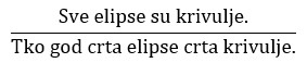 U protekla dva primjera dokazali smo intuitivno očiglednu neimplikaciju i intuitivno očiglednu implikaciju. Što bismo rekli o sljedećoj implikaciji