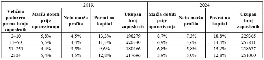 Prosječna marža dobiti prije oporezivanja za poduzeća u potpunosti u privatnom vlasništvu je za razdoblje od 2021. do 2024. godine iznosila 6,51%, a u 2024. godini je dosegnula 6,91% (7,12% ako se uključe i poduzeća s jednim zaposlenim). Iznosila je 5,27% 2019. godine.