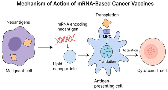 Pri tome mRNA služi kao uputa stanici da proizvede ciljane antigene (npr. neoantigene nastale mutacijama tumora), koje zatim antigen-prezentirajuće stanice (APC) procesiraju i prikazuju našim T-stanicama. To je bitno jer tumori često stvaraju mikrookoliš koji je namjerno što manje vidljiv našem imunološkom sustavu. Malo efektorskih T stanica ulazi u tumor, a one koje uđu brzo postaju iscrpljene. Ovakva terapija prvenstveno je zamišljena kao dodatni podstrek terapijama koje uklanjaju imunološke kočnice (inhibitori kontrolnih točaka poput anti-PD-1/PD-L1), mijenjaju mikrookoliš tumora (npr. određeni kemoterapijski režimi, zračenje) ili ciljaju dodatne imunološke osi.